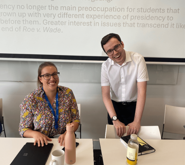 The first afternoon panel focused on an area of particular crisis for historians in 2025, the US. Martha Robinson Rhodes from Royal Holloway began with a reflection on her own experience of teaching Queer History, one of the key battlegrounds in current culture wars, at Northwestern University in Chicago. Illinois’ status as a ‘blue state’ meant that this was not a story of repression of what could be taught, but did deliver some interesting reflections on how students reacted to growing attacks on LGBT rights in the U.S. The ‘major/minor’ system allowed more students taking scientific degrees to enrol on the module, and this was perhaps reflected in many students displaying a teleological view of progress towards LGBT equality that was being disrupted by conservatives. Hence, such developments were all the more shocking. Alex Riggs also discussed changing student views from his teaching of the module From Reagan to the Rainbow Coalition at the University of Manchester. As tempting as it might be to take a presidency-focused view of our time as an ‘age of Trump’ or ‘age of polarisation’, students in Riggs’ experience were just as concerned, if not more, with trends that transcending presidents, namely the rolling back of LGBT and women’s rights, and American complicity in the atrocities of Gaza. Further panel discussion with Lydia Plath and Rebecca Stone (both based at Warwick) underlined these developments, with Stone noting that American Studies students were far less inclined to see the nation as a ‘land of freedom and Coca-Cola’ and instead taking a much more critical view of its society and, as Plath suggested, interrogating the Transatlantic comparisons that this generated far more.
