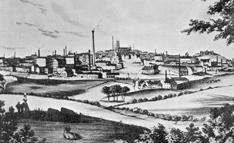 Image caption: Industrialisation: 19thc. town in Lancashire, n.d., photograph < https://wellcomecollection.org/works/vcvsfxe5>